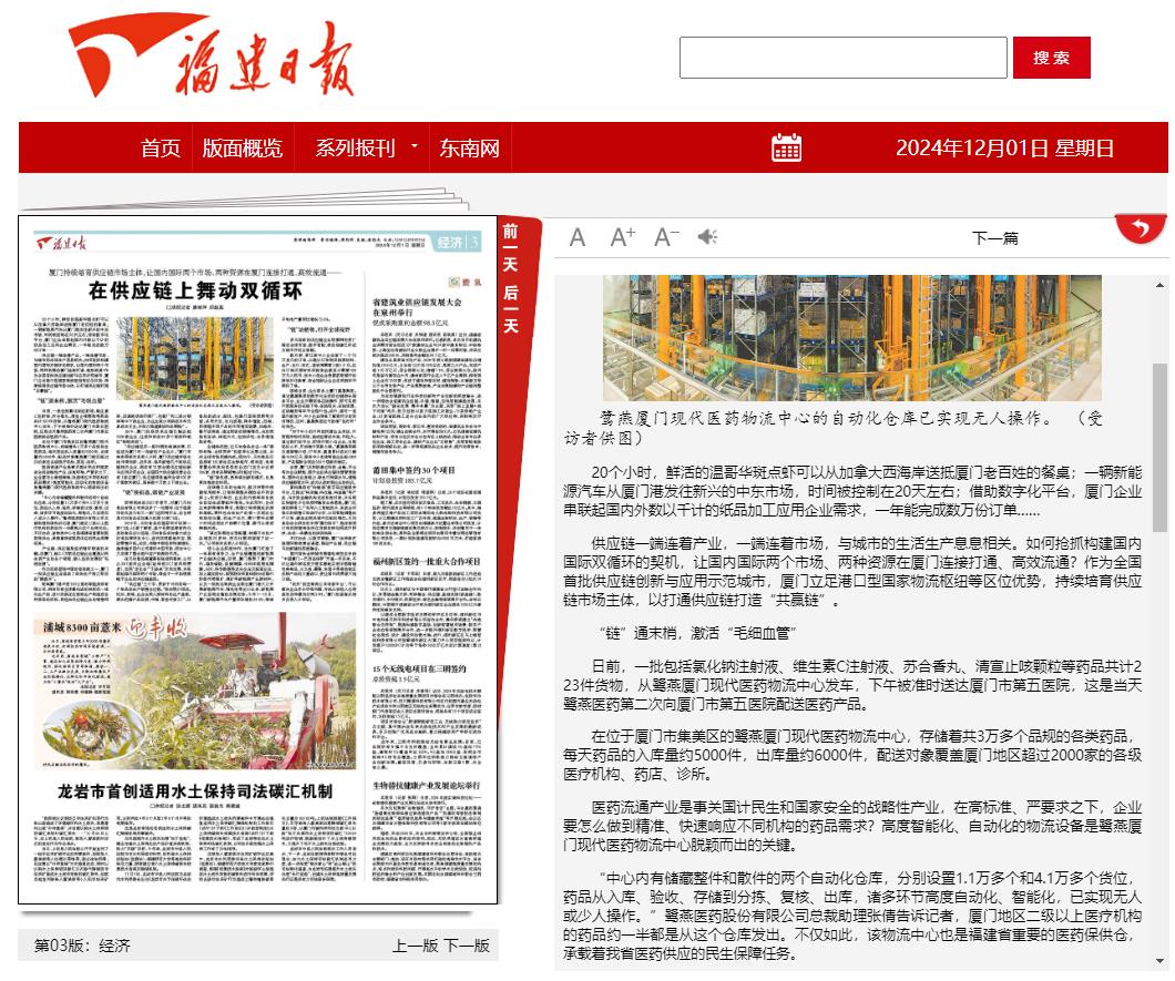 www.8luck how 作为厦门市第一批供应链创新与应用企业,得到福建日报专题报道
