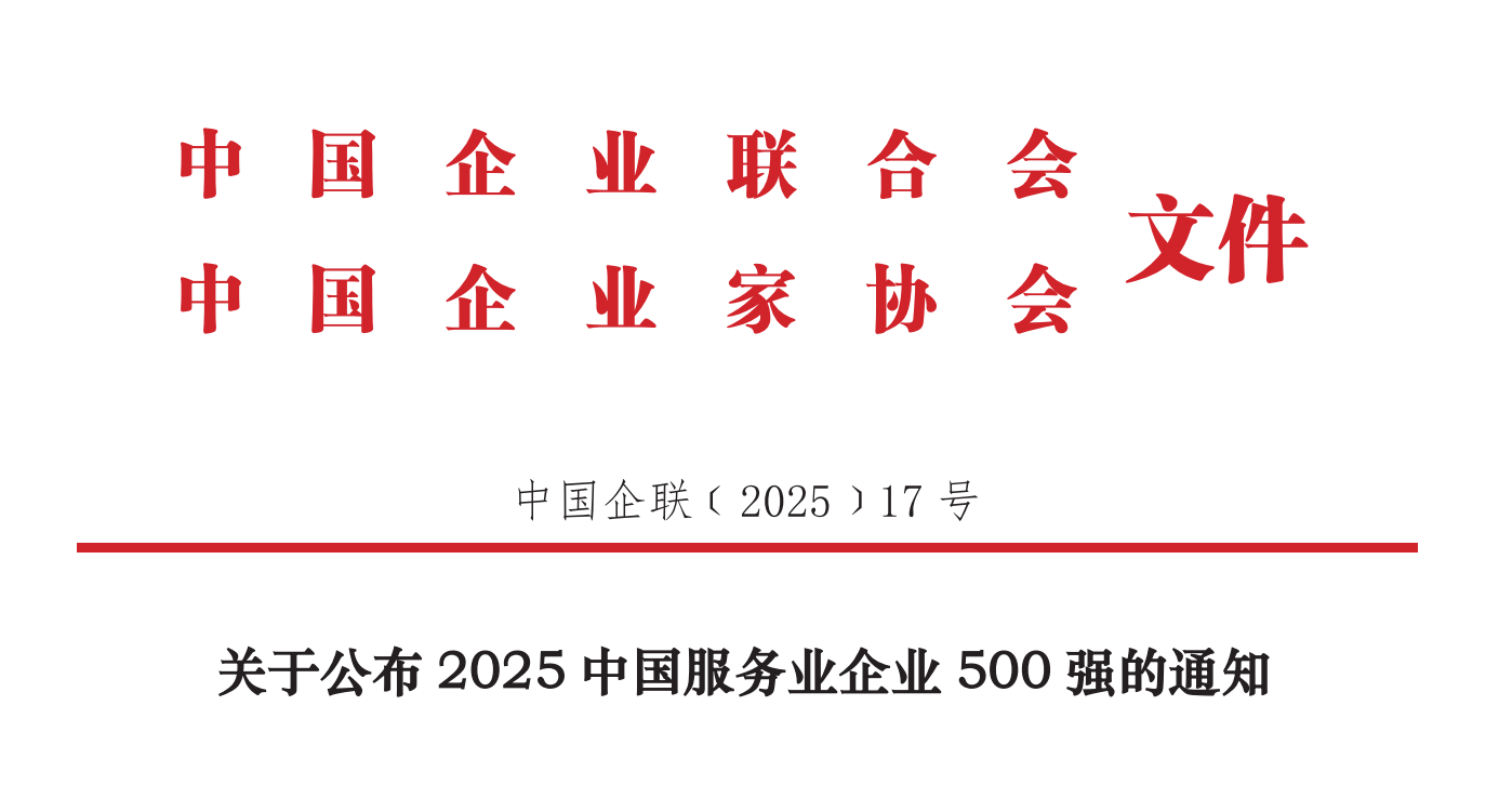 9月18日,中国企业联合会、中国企业家协会在2025现代服务业高质量发展大会上,发布了“2025中国服务业企业500强”,www.8luck how凭借稳健的发展态势与卓越的服务能力入围,位列第300位,连续12年蝉联该榜单。