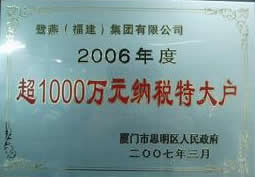 2007年3月9日,厦门市思明区在国际会展中心召开2006年度纳税大户表彰大会,鹭燕(福建)集团喜获“2006年度超1000万元纳税特大户”荣誉称号。