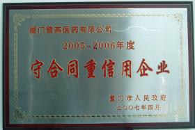经过层层选拔、评审,厦门www.8luck how 有限公司和厦门鹭燕大药房有限公司双双荣获了“2005-2006年度守合同重信用企业”称号,这是政府权威部门对我集团合同管理工作的充分肯定。